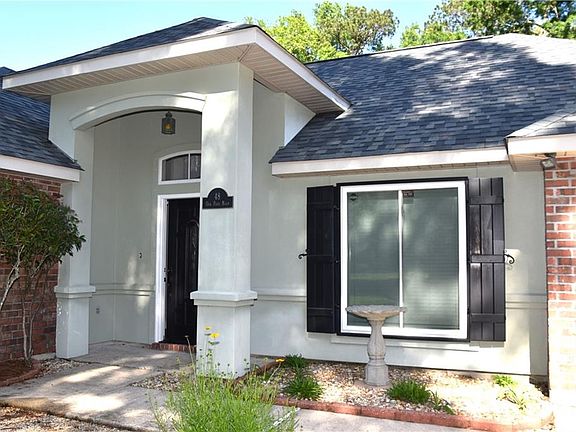 Ready to move in French Country Home with open floor plan. 1559 Sq. ft. 3 Bed room 2 bath on 1/2 acre lot. Located in a great location approximately 4 miles to Hwy 21 River Chase & 5 mile to Pinnacle shopping center, interstate and more. Lovely den with cathedral ceilings, built in bookcase, lots of windows, wood laminate floors and wood burning fireplace. Spacious Kitchen has lots of cabinets, counter space, bar area ,Pantry, range with double oven and dishwasher. Primary bath has whirlpool tub,shower, double vanity and large primary closet. Primary bedroom has tray ceiling and crown molding. Large screened in back porch to enjoy the outdoor life overlooking the large back yard. Has a country feel. House has Storm shutters in front and easy to put on aluminum storm panels for every window & doors on side and back. Roof is 2 1/2 years old and custom windows replaced 2017.Front and back door less than 2 years old. Flood Zone C. Fire station is 2 doors down and St. Tammany hospital about 7 miles.