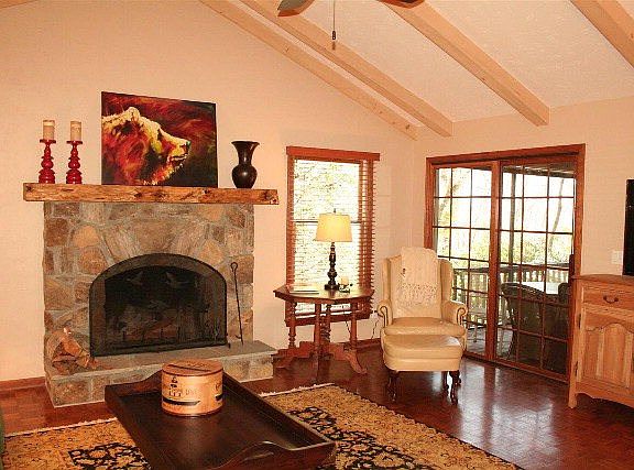 Great value in Highlands Falls on the golf course. Greatroom has vaulted ceilings with beams. The large dining room with wet bar could be converted to a den because there is plenty of room for a dining area in the greatroom. All bedrooms open to decks, plus there is a screened porch off of the greatroom. The terrace level boasts the third bedroom and a large family room. Membership in Highlands Falls is available but optional and there are special programs for new property owners for membership.