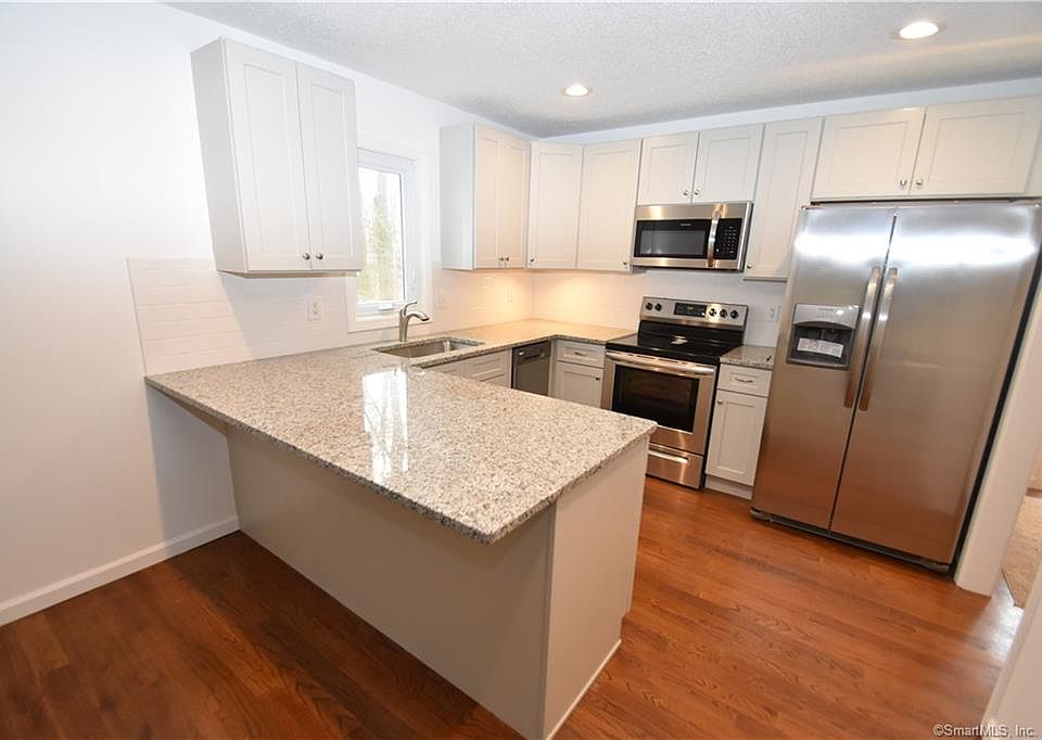Sparkling Remodeled Townhouse with Updated Kitchen including SS Appliances, Hardwood Flooring, New Cabinets, Tile Backsplash, Granite Counters and Breakfast Bar. Kitchen is open to Large Combination Living Room/Dining Room with Cathedral Ceiling and French Door to rear Deck. The Master Bedroom Loft has new Carpeting, a Full New Master Bath and overlooks the Living Room. The Recently Finished lower level as New Carpeting and will be an excellent Family Room, next next to it is a separate Laundry Room. This is by far one of the nicest units in the Complex. Location is a short distance to Bradley Intl. Airport, Amazons 2 locations and other major companies located in the area. Immediate Occupancy is available. Pets allowed 1-2 Cats or 1 Dog 60lbs.