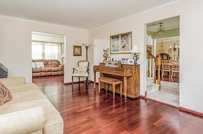 MOVE IN READY IMMACULATELY MAINTAINED & UPDATED 4 bedroom 2.5 bath colonial on a quiet street in desirable Rohill Estates. Enter through beautiful etched glass door into ceramic tiled foyer leading to the completely UPDATED KITCHEN w/ granite countertops, ss appliances & ample cabinetry w/decorative glass front doors. Floor plan features FR w/ brick wood burning fireplace connecting to kitchen w/large eat in area complimented by sliding glass door to deck.Crown moulding,Brazilian cherry floors in FR, LR, & formal DR. Bonus room off kitchen for office/den.Upstairs 4 good sized bedrooms w/ updated bath and walk in closet in MBR. Step out sliding glass doors to your expansive deck w/ retractable awning.Part finished basement w/ built in shelving & plenty of space for recreation/exercise/office.HOME WARRANTY ALSO!
