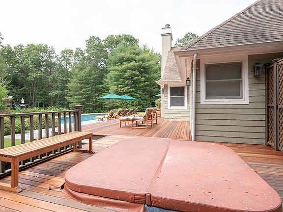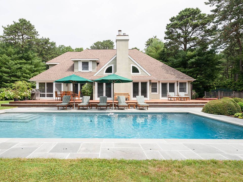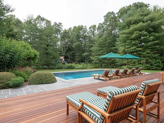 Experience peaceful, gracious living in this pristine, light-filled 4 bedroom, 3.5 bath traditional home with heated gunite pool, hot tub, tennis and play area on 2 acres in East Hampton's Northwest Woods. Set amid spacious, beautifully landscaped grounds, where perimeter trees provide privacy, the home features light-filled living areas including living room with soaring vaulted ceiling and a fireplace, dining room, and eat-in kitchen with granite countertops, island with seating and high end stainless steel appliances including paneled Sub-Zero refrigerator. A screened porch is off the kitchen; multiple glass doors open from the living areas to a mahogany deck extending across the rear of the home. A serene first floor master suite has a vaulted ceiling, glass doors to the deck, and a luxe bath with double marble vanity, spa tub and frameless glass shower. Additional bedrooms and baths are all beautifully finished and appointed. Outdoors soak up some sun or entertain on the spacious deck, enjoy the pool, or relax on a shady, vine-covered pergola. Additional amenities include a half basketball court. The village center and ocean beaches are minutes away.