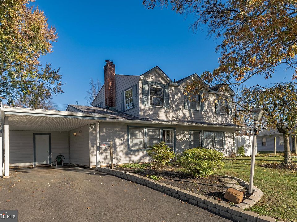 Come check out one of the very few 2 story Single homes with a dining room in the beautiful Oak Hollow Community. This Bucks County Beauty has space, space and more space. There are 4 bedrooms upstairs with a full updated bath with granite tile and flooring and 2 additional rooms downstairs on the main level with another full bath. This amazing home has been freshly painted with neutral colors throughout, has updated lighting, and updated flooring throughout. The main level features a large eat in kitchen with tile backslash, granite counter tops, Cherry wood cabinets, lazy Susan cabinet, black appliances and dual wood burning fireplace that also faces the large open living and dining area with ceiling fan and sparkly dining room chandelier. There are dual entrances that also lead to one of the main level bedrooms with walk in closet and an additional room that can be used as a gym, office or play room. There is also a full bath, first floor double door laundry area with shelving and storage closet The door off of the living room grants access to the large rear wide patio, fenced in backyard and rear shed completes the first floor. The upper floor features a spacious hallway, 4 nicely sized bedrooms, natural mahogany stained hardwood floors throughout the upstairs. Each room is equipped with nicely sized walk in double door closets, loads of windows with natural light and an updated granite tile bath completes this level. The exterior front has been meticulously landscaped, has an expansive driveway and carport equipped with a dual entry storage shed. The electric and heater have been replaced and upgraded within the last 2 years. Schedule your appointment today and make this house your NEW HOME!!!!!