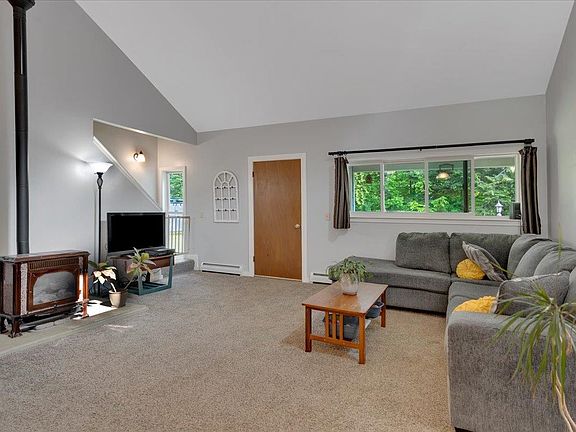 Tucked at the end of a dead-end road, this adorable end-unit condo in Jericho’s desirable Sunwood Village offers comfort, charm, and convenience. With 3 bedrooms and 2 bathrooms, this move-in ready home features an inviting open-concept living area with vaulted ceilings, abundant natural light, and a cozy gas stove for chilly Vermont days. The efficient kitchen flows seamlessly into the dining and living spaces- perfect for entertaining. The bright dining area is surrounded by windows overlooking a private, tree-lined backyard and offers direct access to a lovely patio for ideal indoor-outdoor living. Down the hall are two spacious bedrooms, and a full bath with convenient first-floor laundry. Upstairs, a third bedroom with an attached ¾ bathroom offers a lovely primary suite. Additional highlights include an attached one-car garage and a full unfinished basement for storage. The large flat yard is a true oasis, with a storage shed and mature trees. Enjoy a welcoming pet policy and low-maintenance living with an HOA that covers trash, plowing, and more. Fantastically located, this condo is close to outdoor recreation opportunities, top Vermont ski resorts, and just minutes from local favorites like Palmer Lane Maple and Essex for dining, shopping, and necessities. A rare opportunity to enjoy peaceful living in the heart of Jericho- don’t miss this charming gem!