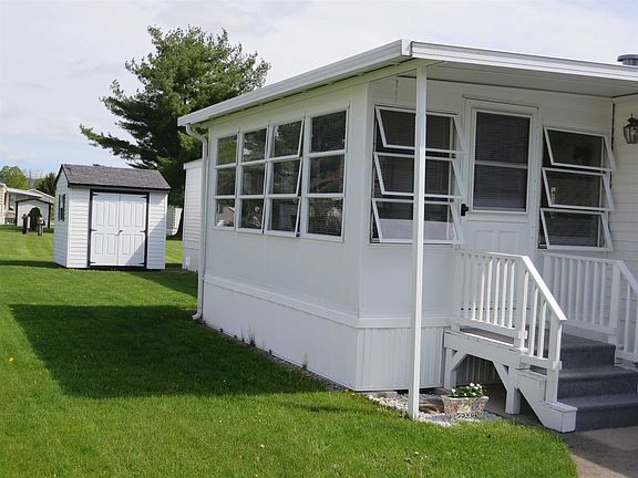 Well maintained mobile home with an adorable sun porch. This home is located in Powell Park an adult park age 55 and older. The lot rent is $520.00 a month and includes taxes, septic, water, garbage, lights and plowing on the main roads. Park does allow one cat or one small dog.