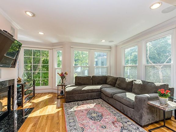 One of the most desirable locations in JP! Peaceful urban haven: Young dramatic attached townhouse with enviable yard on a private wooded garden lane just blocks to Pond, the T and JP Center. Gracious entertaining both indoor and out, skylights, wood burning fireplace, patio dining off stunning granite kitchen, flex layout,floor to ceiling windows, jacuzzi, custom blinds, master suite with dressing room/custom cabinets, private basement space not included in sq footage perfect for exercise/darkroom/extra storage, C/A, garage, low fee & in wall speakers are just a few of the details that help make this a happy home...