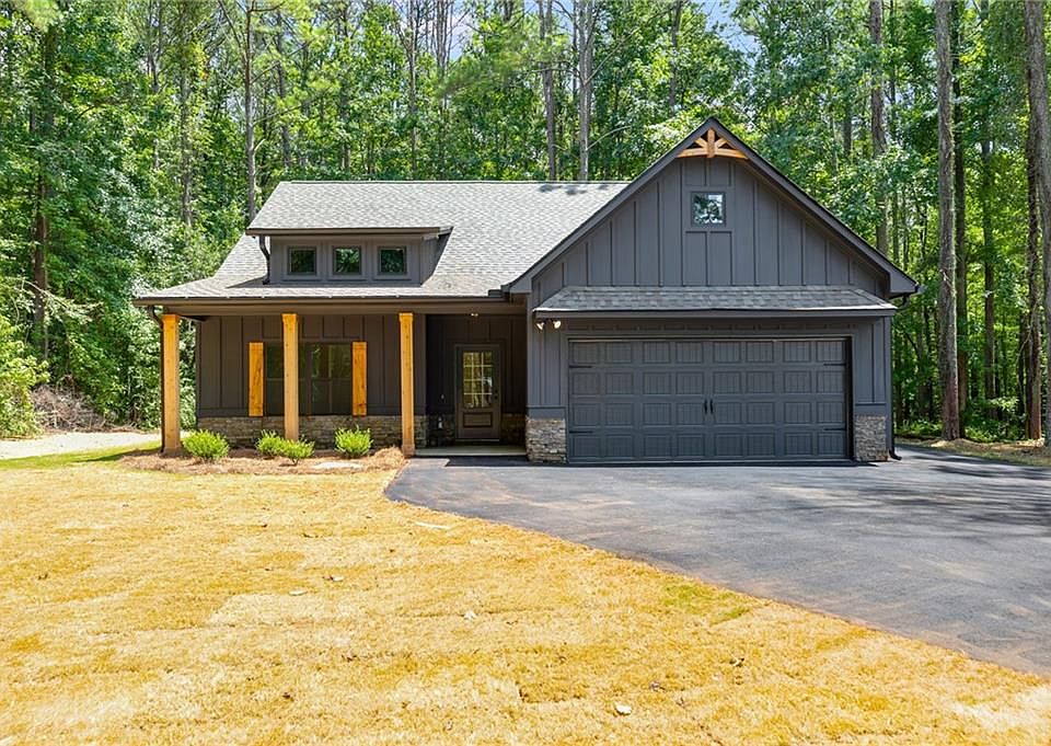 Construction is COMPLETE! Welcome home to beautiful Lake Buckhorn! This exceptional property is situated on a spacious and extremely private 3 ACRE lot, offering stunning views of the lake. Don’t miss this rare opportunity to own a secluded 3-ACRE lake retreat with a breathtaking lake view! This stunning NEW step-less craftsman-style RANCH is designed with modern living in mind! The open floor plan features a vaulted family room with a custom shiplap fireplace. The gourmet kitchen features an oversized island that is perfect for entertaining and boasts a charming farmhouse sink. You'll also appreciate the convenience of a separate laundry room & an OVERSIZED PANTRY, providing ample storage and functionality. Every detail exudes luxury and style, making this home inviting and practical. The Gourmet kitchen showcases a CUSTOM ISLAND, FARMHOUSE SINK, STAINLESS APPLIANCES, shaker CABINETS, GRANITE COUNTERTOPS & HUGE PANTRY. The primary suite offers a luxurious ensuite bath with a breathtaking TILE SHOWER & custom glass door, plus a large walk-in closet. Two generous secondary bedrooms provide ample storage with large closets, complemented by a stylish full bathroom. Relax on your picturesque front porch while overlooking the stunning lake views. The oversized covered back porch is the perfect spot for relaxing & entertaining and features a custom wood-burning OUTDOOR FIREPLACE. This gorgeous modern farmhouse style includes BLACK exterior WINDOWS & Hardie Plank siding! Standard features include beautiful luxury LVP in the kitchen, living room, entry, and baths; plush carpeting in the bedrooms; and high-quality finishes. Enjoy the freedom of a PRIVATE LAKE LOT with no HOA restrictions, combining tranquility with convenient access. Be sure to inquire about incentives by utilizing our preferred lenders. Minutes to I-20, Temple, Villa Rica & Carrollton!