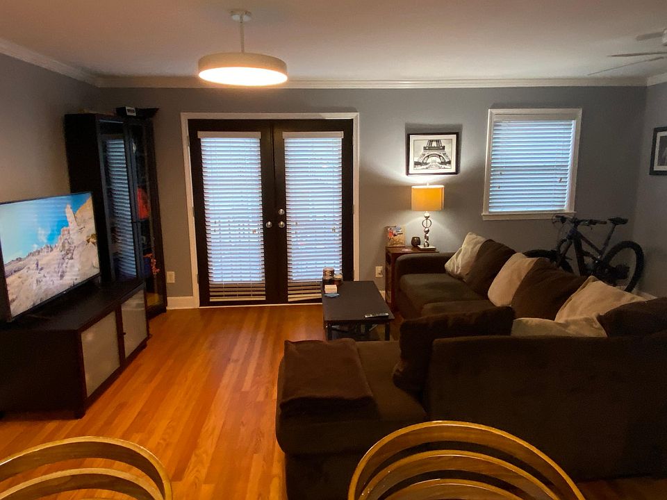 This end-unit flat features hardwood floors throughout and open kitchen with granite counters and stainless steel appliances. Unique floor plan to Buckhead Square has Juliette balcony, large private deck, under stair storage closet accessible from the unit, and extra space ideal for home desk/ office setup. Walls have fresh paint and a brand new HVAC system installed less than 6 months ago meaning lower energy bills. Tenant responsible for electric and internet/phone. Rent covers water and trash. Included is one reserved parking spot and one additional visitor parking pass which is a first-come, first served basis. No smoking allowed inside the unit or common corridors.