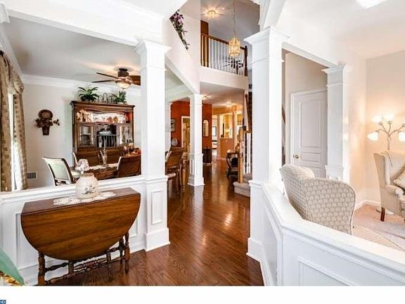This impeccably maintained Newtons Landing home has a desirable open layout and is much larger than it appears from the outside. An exciting array of colors and tones, 9' ceilings, wonderful lighting and architectural accents such as pillars and custom moldings all combine to make this a truly unique and wonderful home! A charming front porch opens to a large foyer with gorgeous hardwood flooring that flows beautifully throughout most of the main level including the kitchen and family room. A living room and dining room sit opposite the foyer area and provide for easy entertaining. Oversized windows provide lots of natural sunlight which grace all the open space. The eat-in gourmet kitchen is totally updated with Corian counters, tile backsplash, breakfast bar, double sink, double oven and newer appliances. You will love how the kitchen opens to the great room with a soaring cathedral ceiling and a large slider leading out to the back patio which overlooks a large open space. The master suite (brand new carpet being installed) and a 2nd bedroom are also found on the main level. The master bath is huge with a double sink, soaking tub and separate stall shower. Upstairs features a large loft that makes a terrific family room area, plus the 3rd bedroom, a storage room and a full bath. This home offers tons of storage space throughout, plus a 2 car garage for even more possibilities! This community appeals to the younger side of 55+ living and offers a wonderful assortment of fun activities and amenities such as tennis billiards, exercise classes, holiday gatherings in the clubhouse & lots more!