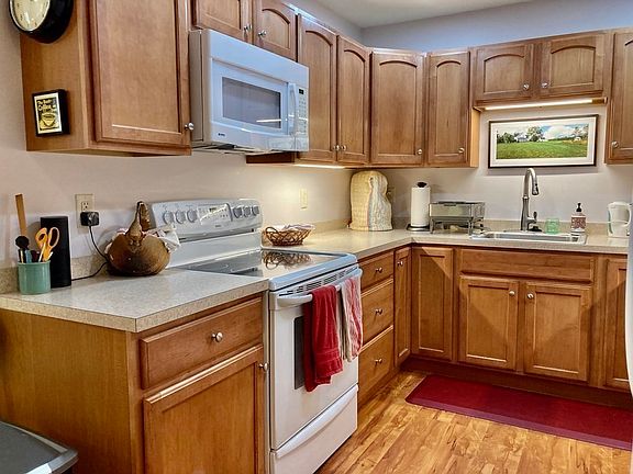 Bright, Big & Inviting - Second largest unit in The Rice School Condos 25 unit complex! Open concept living / dining floor plan with soaring 11' ceilings. Fully applianced kitchen. Spacious 2 bedrooms with walk in closets & 2 full baths. Main bedroom has full bath w/ custom tile shower/glass door & private balcony for relaxing & quiet time. Central Air. Condo fees also include heat, hot water, water & sewer, garbage. Sale includes 2 deeded parking spaces (#21 & #30) & 2 deeded storage closets (#21 & #27). No age restrictions & handicap accessible. The Rice School Condominiums is conveniently located & close to a playground, Gale Free library, Davis Hill School, Senior Citizen Center, Band Stand, & Post office, coffee shops & shopping in town center. Pets allowed w/restrictions.
