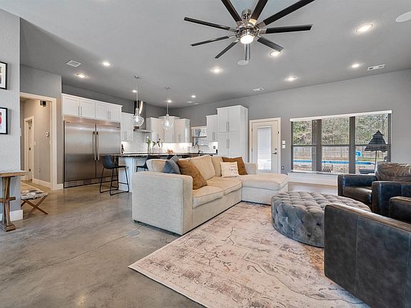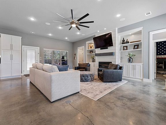 WOW, If Country living feel but minutes to the local schools and Town amenities is what you are looking for, then don't wait! Come see this amazing Modern Farmhouse incl. shiplap & barn doors, Open concept, Split bedroom awesome floorplan. The home features 3 bedrooms, 2 1/2 baths along with a bonus room that is currently being used as the homeowners Salon but with very little work to remove the Sink... It would make a great office, nursery, movie room... Walk thru this Beautiful front entry thru Double Doors into a large LR featuring Stained Concrete Floors throughout, a Gas fireplace that opens up to the Kitchen w/ a huge Island and gorgeous granite countertops, Built in XL Refrigerator conveys, large pantry. Master bath features a custom tiled shower, double sinks, make-up vanity and Huge closet with lots of built-in's. 2nd/3rd Bedrooms feature a Jack/Jill bath with large walk in closets. Large Laundry w/loads of storage. Out Back you will love the Large covered Patio w/TV and Speakers to convey and entertain in this beautiful Pool along w/ a Built in Gas Firepit area. Home also features a SAFE ROOM in the garage. Large Lot with room to add SHOP!! SEE AGENT REMARKS