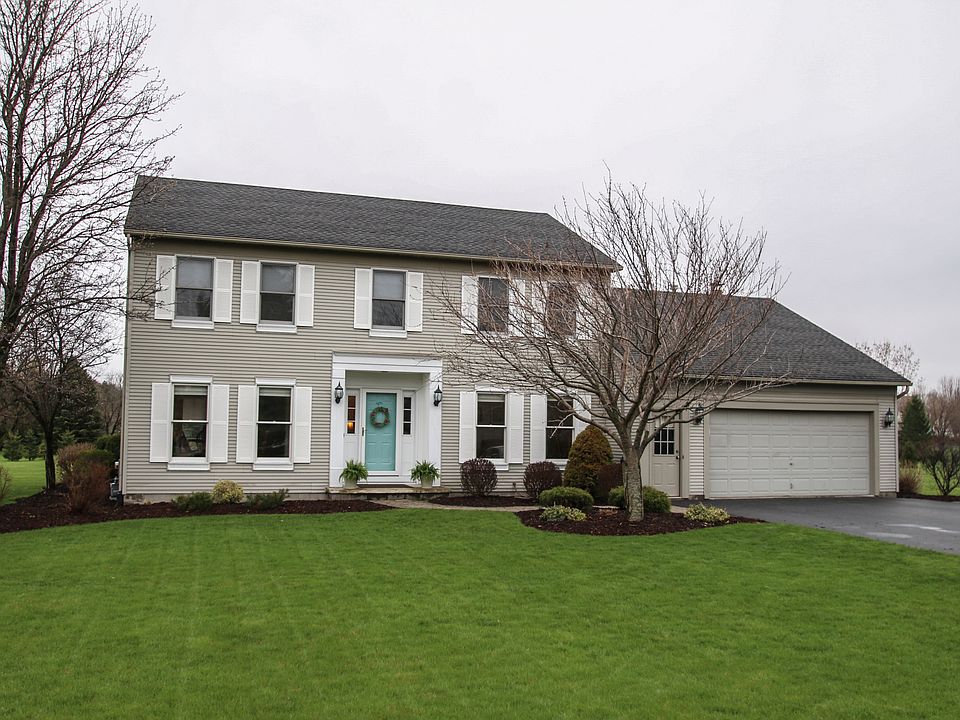 Gorgeous 2406 sq. ft. 3 bedroom, 2 1/2 bath Colonial on 1 plus acres! Huge open kitchen with center island, eat in area, walk in pantry, recently updated with granite countertops, tile backsplash and kitchen tile. Additional features include living room, family room with wood burning fireplace, formal dining room, office, master bedroom has Brazilian Teak hardwood flooring and master bath, lower level rec room and workshop. Roof 5 years old, water heater 3 years old. Entertain on the 500 sq. ft. paver patio. Nicely landscaped. Country living yet close to all conveniences.