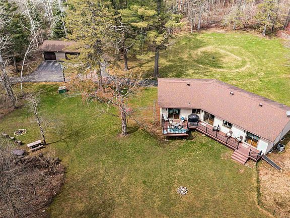 Experience the peaceful country living within minutes to town. Surrounded by tall mature trees, this 5 bedroom 3 bath home sits on almost 14 park-like acres. Whether you're an avid hunter or just like exploring Mother Nature, there is ample wildlife and plenty of trails. Upon walking in, you are greeted with loads of natural light, vaulted ceilings, a large eat-in kitchen with plenty of storage space, an informal dining room, and three patio doors that lead to the large deck that expands the length of the home. 3 main floor bedrooms, with a private en-suite and walk-in closet in the primary. Main floor laundry for added convenience. The lower level features an enormous family room, great entertaining, two large bedrooms, full bath and a sauna to come home to relax in. Three-car detached garage with an asphalt driveway. Newer furnace and central air. All this and more in the Esko school district.