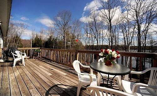 Quality-crafted contemporary Ranch, w/ over 300' of waterfront, beautifully landscaped, 3 BRs, 2 BAs, walk-out finished basement, oversized 2-car Garage, deck, 3 private acres on spring-fed Swan Pond.