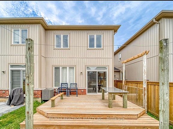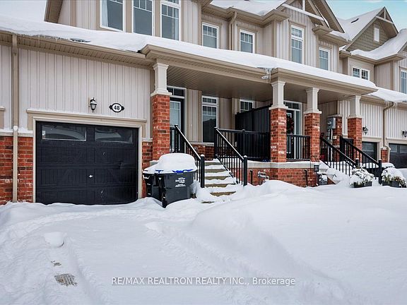 Welcome to this 5-year young 2 storey townhome in beautiful Collingwood! The welcoming covered front porch is the perfect place to enjoy a beverage while watching the world go by. Upon entering the home, you will be greeted by a spacious entry, soaring 9 ceilings, a 2-piece bath, a sizable living room that is open to your stylish eat in kitchen with convenient breakfast bar, stainless steel appliances, tile backsplash & walk out to a 16 X16 ft concrete patio contiguous with the deck, and a partially fenced back yard. Your outdoor retreat is beautifully landscaped, ideal for relaxation and entertaining. Upstairs you will find three spacious bedrooms & a 3-piece bath. The primary bedroom offers ensuite privileges with a beautiful glass shower. The lower level includes a finished rec room with hardwood flooring; perfect for additional living space to enjoy with family & friends. This floor also offers a convenient 3-piece bath & laundry room equipped with a new washer & dryer. Located close to walking and biking trails, the beach, a ski hill, and downtown shopping and dining, this home offers the perfect blend of lifestyle and accessibility.