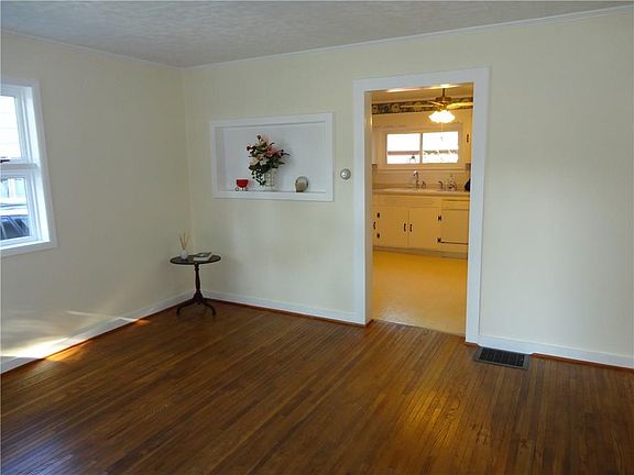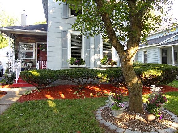 Welcome to this charming home. From the covered front porch you can admire the carefree landscaping. Enter the living room & enjoy the charming hardwood floors. Lots of character in this space, which can also include a dining area. Or use the large first floor bedroom as a formal dining room. The eat-in kitchen is fully applianced with stove, fridge & dishwasher. Lots of cabinets and counter space are yours to enjoy! There's a large full bath with laundry area (washer & dryer negotiable). Lots of linen closet space and a built in window seat. There's a mudroom that leads to a rear covered deck, yard & garage. Upstairs there are 2 generous bedrooms with gleaming hardwood floors, built-in shelves and very large closets! Great home for you, so stop by and take a look!