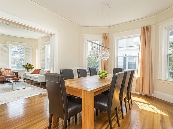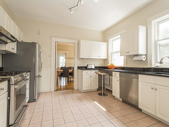 This two level condominium unit is located on the second and third floor of an elegant Philadelphia Style two family home. The home has double bays on the front, a porch, a rear deck and a shared yard. The driveway and garage are exclusively for the use of this unit. On the main floor is an entrance foyer, and a living room with pocket doors that separate it from the dining room. The dining room has a bay window and a built in china closet with leaded glass doors. The kitchen has been updated with granite countertops, a GE Cafe gas range, and other upscale appliances. There is a pantry closet and also a small laundry room with washer and dryer. On this level is also a bedroom, and a bathroom. French doors lead to a den or bedroom, currently used as a home office. On the upper floor are four bedrooms and a second bathroom. Three of the bedrooms have walk-in closets. One bedroom is unheated. The bathroom has a soaking tub and a separate shower. There is ample bsmt. storage.
