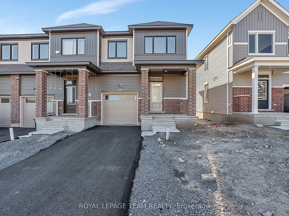 Brand new end-unit home in Barrhaven! This stunning home features three bedrooms, 2.5 baths, and a fully finished basement with oversized windows that flood the space with natural light. The dream kitchen boasts granite countertops and beautiful finishes throughout. The home comes fully dressed with window blinds and curtain rods, and showcases elegant flooring and tasteful neutral palettes. A single-car driveway completes this move-in-ready gem. Enjoy a modern, functional layout designed for comfort and style.