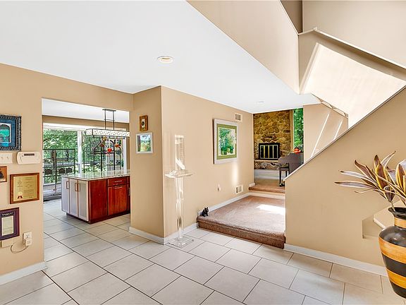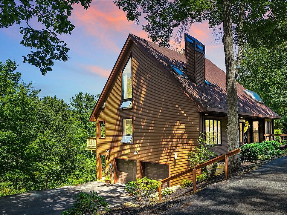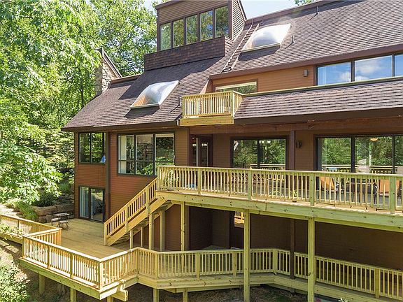 Your Peaceful, Tranquil Slice of Heaven Awaits - Stunning Contemporary on Almost 1 Private Acre, Backs to Woods & Deer Creek! Chef's Kitchen w/JennAir Stainless Fridge & Wall Dishwasher, Huge Granite Topped Island, Gorgeous Lighting, Custom Cabinetry w/Soft Close/Rollouts & Breakfast/Sunroom. Spacious Adjoining DiningRm w/Beautiful Plaster Work & Slider to NEW, Expansive, 3 Level, Rear Deck System w/Incredible Wooded & Water Views. Soaring 18' Wood Vaulted Ceiling & Stone Fireplace in LivRm, Custom Windows & Skylights Throughout, and Large Upper Level Loft/Den w/Vaulted Wood Ceiling Continuing into Primary Bedroom w/Fireplace, Huge Walk in Closet, 14x13 en Suite Bath & Private Balcony. Two addit'l Bedrooms on Main & Lower Levels Offer Separation, Privacy, Walk in Closets & en Suite Baths w/Walk in Showers, and Deck Access! Freshly Painted Exterior, Governor's Driveway, Level Entry, Oversized Garage, Wide/Long Driveway + Residential/Commercial Zoning so You Can Work & Live in Paradise!