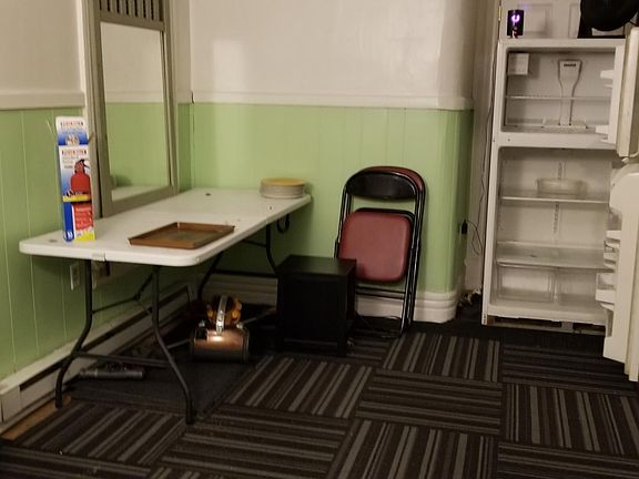 first floor apartment. 1 bedroom 1 bathroom and 1 living room. no kitchen there is a refrigerator and microwave owner pay electric, heating and free internet , bed and some furniture include