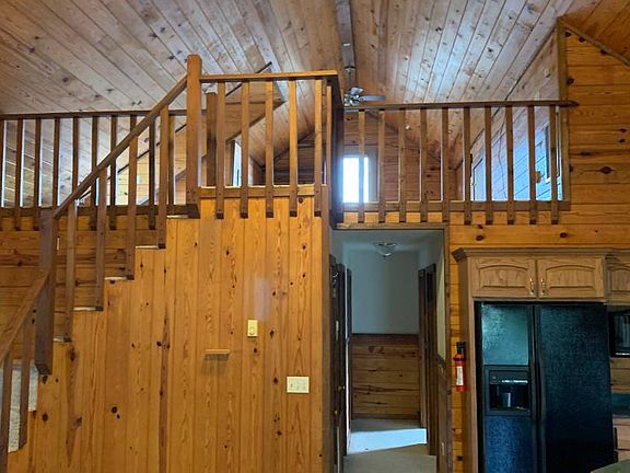 Log home on 4.01 acres. 1800 SF home - 2 car garage and a one car garage connected by a storage area with lots of shelves. Screened in front porch. Native stone wood burning fireplace. Metal barn, 3 stall horse shed, precast concrete storm shelter. Approximately 2.5 acres of pasture. GE appliances and Maytag washer/dryer in large laundry room. Very nice location and out of the flood zone. $260,000