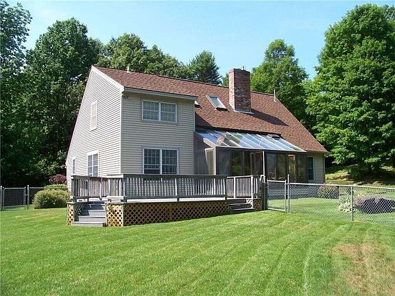 Enjoy peaceful sunrises form the expansive back deck. This 3 bedroom home offers an amazing sunroom, private fenced-in yard and primary bedroom and bath on the first floor. Granite counter tops, tiled floors and stainless steel appliances adorn the kitchen. Large laundry/mudroom directly off 3 car garage. Featuring whole house central air conditioning and on demand generator this home can easily be heated with oil forced air or by the 2 woodstoves. Second story features a family room, 2 bedrooms and full bath.