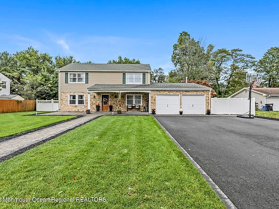 Elegantly renovated open-concept home in the most desirable Marlboro TWP! Owners spared no expenses in making this house one of a kind! Sun-filled through multiple skylights and oversized picture windows in the family room overlooking a large, private backyard. Kitchen with quartz countertop and farmhouse sink. Other upgrades include but not limited to newer fireplace, recessed lights, hardwood floors upstairs, security system, Double walk-in closets in the Master Bdrm. Pavers, new sod and sprinklers in the front. Oversized 3-car width driveway. Nominal annual membership fee grants entry to Monmouth Heights Swim and Racquet Club. House located in the top rated Marlboro school district!