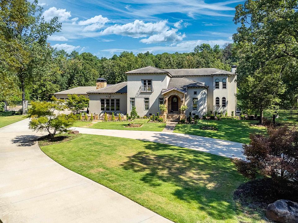 Spectacular home located on gorgeous acreage in gated neighborhood adjacent Yacht Club Marina! Exquisite design and impeccable construction. This home provides the ultimate setting for fun family living and fabulous entertaining. Handsome entry flanked by elegant formal dining and study. Gourmet kitchen open to breakfast and den with FP. Luxurious spa inspired master suite on the main level. Large family living rm w/stone FP. Upstairs: 4 br's 3 ba's. 4 car garage. Large guest house with up to an additional 4 car garage. Beautiful pool, outdoor screened porch with full kitchen, and large stone patio surrounding the pool area. Beautifully landscaped with iron fencing around the property.