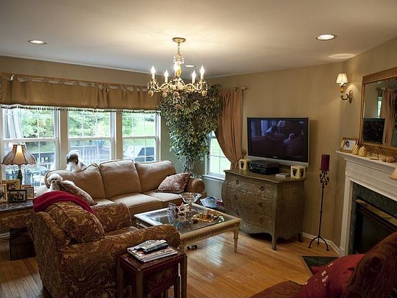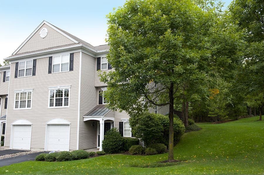 Lovely end unit townhouse was originally used as the model! Entry foyer with wood floors opens to a large family room/ rec room, there is a also a laundry room on this level. The garage has been converted to a large closet and can be converted back easily to a garage. The upper level is open and airy with a formal living room and dining room with wood floors. The family room features a fireplace, wood floors and is open to the beautiful kitchen with a breakfast bar, granite countertops, wood floors, stainless appliances and a dining area with a door to the rear deck and yard. The second floor master bedroom has a vaulted ceiling, walk in closet and an updated beautiful tumbled marble bath with a whirlpool, and shower. There are 2 additional bedrooms, one with 3 closets, and a full bath.