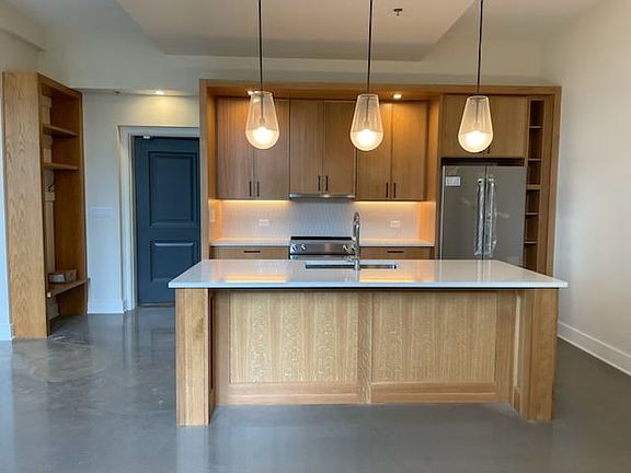 One of eight units. First floor one bedroom. Walk into an open modern kitchen and living room with concrete floors, high ceilings, ceiling fan and gorgeous large windows with beautiful views. The kitchen has stone counters, large kitchen island, ample cabinet space, brand new appliances and gorgeous lighting fixtures. Bedroom has high ceilings, large walk-in closet and ceiling fan Large full modern bathroom with tiled walk-in shower. Unit has a stackable washer and dryer. Tenant responsible for electricity and gas. Included in the rent trash removal, recycling, snow removal, lawn care, water and sewer. Cat considered, no dog and no smoking. $35 per person Application Fee - Non-Refundable for each applicant 18 and over. Sixty percent of one Month's Rent Agency Fee-Refunded if Application is Not Accepted. No Smoking on Premises Guarantor Considered No Dog Cat Considered If Pet Accepted, Renter's Insurance with a Rider on Pet Must be Provided with Lease ACH For Monthly Rental Payments First and Security of One Month's Rent