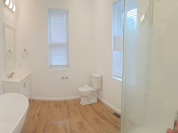 Complete house remodel- new bathrooms, kitchen, floors, roof, paint (inside and outside) and fixtures. Granite kitchen counters and large fenced backyard. Storage shed will be repaired in the future. Property manager is very responsive. Off-street parking. Renter is responsible for all utilities and lawn maintenance. Small pets may be considered for an extra fee.