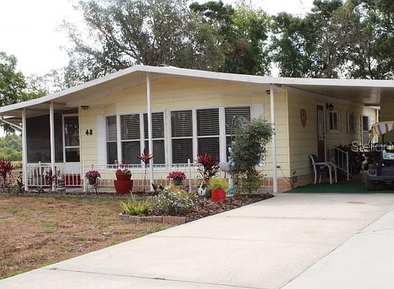 Beautiful, well maintained home overlooking the 11 tee box. As you step into the home you are greeted with an airy, open floor plan. The entire kitchen has been replaced, and it's gorgeous. Large living room overlooks the kitchen. Both bedrooms are spacious. All the vinyl flooring in the home is brand new. Large screened lanai on the side of the house offers stunning views. Large carport with extra storage space. All this on a oversized lot overlooking the golf course. The community is surrounded by The Villages and everything it has to offer. Live music, shopping and fine dining, is literally just outside the community. But inside the community is what really is so special. You won't find a more friendlier place. The camaraderie here is amazing. Our amenities include: large pool with hot tub. Tennis and pickle ball courts. There is a library attached to the fitness center. Billiards room. Large lounge with numerous tvs. Great for Sundays during football season. A wonderful Italian restaurant right on premises. Now for the best part. Our 18 hole golf course is so beautiful and to be in your backyard is incredible. If you love to fish. The lakes and ponds will keep you busy all day long. And for anyone who still can play, we have a gorgeous, well maintained softball field. We have several competitive teams here. Maybe you'll be the next player. Check this home out. You won't be disappointed.