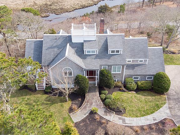 Views as far as the eye can see, over the marsh and Red River, to Red River beach and Nantucket Sound. This upside down house was designed to maximize the ocean views from nearly every room. On the upper main floor find a soaring ceiling with the kitchen, living room, dining room, enclosed porch and massive private primary suite. In the walkout lower level are another primary suite and a third bedroom, a living room/office area and the third full bath. This floor walks straight out to the lower level back yard with more views!