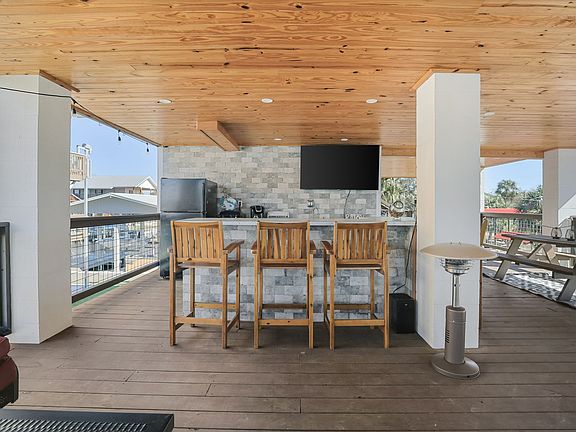 3 Bedroom 3 Bath Waterfront home. Experience stunning Gulf Views with beautiful Sunsets from your own front porch. This home offers a 2 lift boathouse and a seperate davit system. Also a fish cleaning station with power and water. A covered Beach Butler elevator lift to make living in an elevated home easy and convenient. The Second level offers a full mezzamine with a bar and all the necessities including TV's, refrigerator, wine cooler, and plenty of seating to enjoy your friends and family. This level also has a bedroom and bathroom ensuring your guests the privacy they enjoy. The ground level has a large tackle/storage room. The back yard is perfect for a fire pit and enjoying the evening after a day of boating, swimming, fishing, or grilling the catch of the day. This location has very quick access the Gulf of Mexico. Come enjoy the Coastal life style in this golf cart friendly community