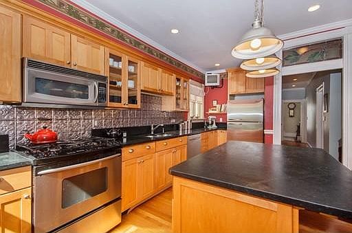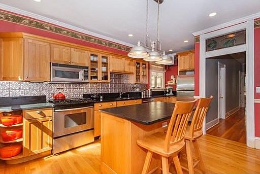 Discover a hidden, hilltop oasis in this distinctive Victorian two-family. Owner-occupied upper duplex, elegantly renovated to modern standards. Sunny double living rooms w/ bay windows, column detail, & front room ideal for home office. Spacious kitchen boasting tin backsplash and large island. Dine in the formal space, or step outside to peaceful rear deck. Amenities: over-sized master bedroom with skylights, central a/c, and reading nook, two cozy bedrooms and updated bath with Jacuzzi soaking tub. First floor one bed, w/ sprawling living and dining rooms allow for a flexible layout / potential second bedroom. Large eat-in kitchen with pantry & rear porch. Retreat to nature in tranquil, fenced-in back yard featuring a Koi pond & plenty of greenery. Lined with Gingko Trees, Ornamental Pears, and colorful Lilacs, this urban paradise is a true gardener's delight. Access JP's most beloved parks & restaurants. Open House Sat 10/3 11:30-12:30 or Shown by appointment.
