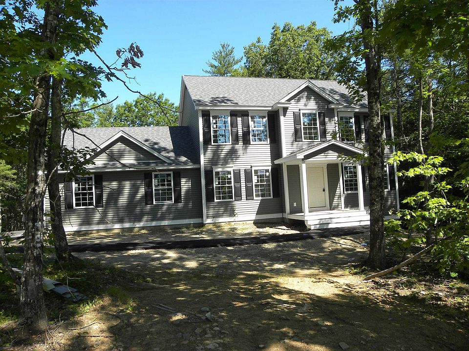 Riverview Estates, Raymond NH, Up and Framed.....New Colonial featuring a Large Kitchen, with Eat-In and Sliders to Deck, Spacious Fireplaced Familyroom, Formal Diningroom, Office, Oak Staircase to Second Floor 3 Bedrooms, Primary Bedroom with Walk-In Closet and Private bath, 2nd Floor Laundry room, FHA/Gas Heat, Electric Hot Water, Paved Driveway and more. Up and framed and still time to choose your colors. 90 day occupancy. Upgrades included: Gas Fireplace, Central Air, Granite in Kitchen and Baths, Tile Floor in the Bathrooms, Hardwood on the First Floor and Garage Door Opener.