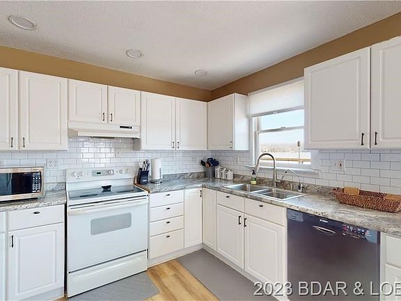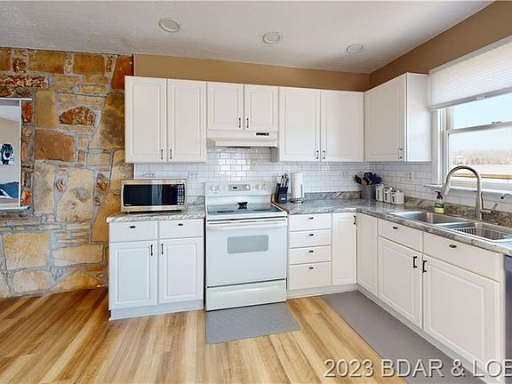 Located on the Big Niangua 5.5 mile marker this lakefront home is the perfect getaway for weekends or full-time living. Boasting nearly 1800 square feet of updated living space and 90 feet of lakefront. Brand new massive deck overlooking the Lake was added in 2022. Home features 3 bedroom and 2 newly renovated bathrooms. Kitchen offers new cabinets and countertops. Main living area offers a real wood burning fireplace created with native Missouri stone. New flooring and paint throughout! New roofs on house and exterior garage in 2020. Rest easy knowing the septic system was replaced in 2020. Lakefront includes dock with two 12x28 slips. Investors take note'this would make a great nightly rental! Furnishings are available for purchase.