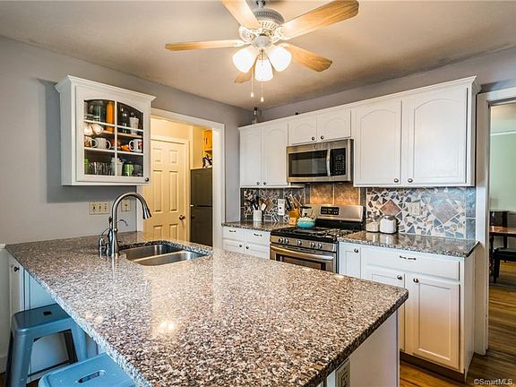 Welcome home to this darling West Hartford colonial. Beautiful hardwood floors run throughout the entire home. The kitchen features granite counter tops and an island, which is a perfect place to eat or hang out. The kitchen conveniently flows into the dining room, which also opens into the living room. The living room has built-ins and a large picture window to let in the natural sunlight. A den/sunroom is located off of the living room and is surrounded by windows so the sunlight can pour in. There is also a full bathroom on the first floor. A mudroom is nicely located off of the kitchen and leads to the backyard. The second floor features three bedrooms and an additional space that is currently used as an office. The full bathroom on the second floor has been beautifully remodeled. This property has a great, level backyard perfect for relaxing or entertaining. It also has a patio and shed.