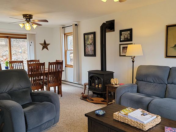 Charming country home! Move right in to this well kept Ranch with open floor plan that features a bright and sunny living room, dining room combo that has a LP gas stove for those chilly nights and sliders to the nice rear deck, breakfast bar/island with lovely kitchen with large sink and stainless appliances, 2 bedrooms and a full bath complete the upstairs space. Downstairs there is a partially finished family room/office, a laundry & storage area, plus a 1.5 car garage. Plus a new front deck. Nice yard with some open lawn and mature trees. Paved driveway. Nicely set on a quiet road and less than 2 miles to the Delaware River and the charming hamlet of Narrowsburg, NY. Don't miss out on this wonderful home!