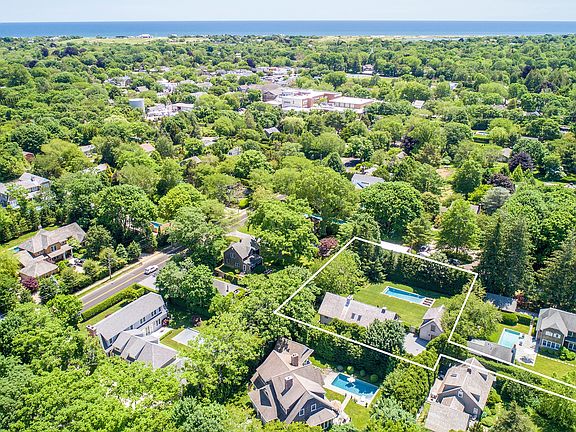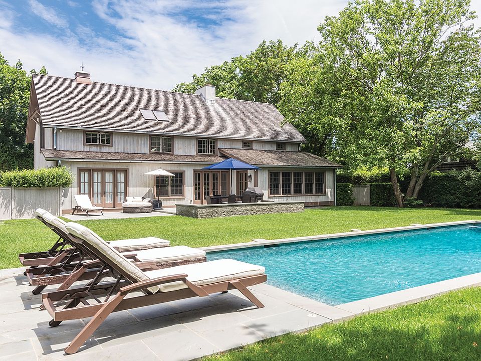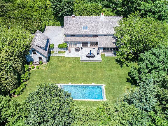 Tucked away down a tree-lined driveway and situated on one of the most desired village streets in East Hampton sits this stately Yankee Barn Homes, Jeffrey Rosen Design, Gerard Mingino Build post & beam home on a shy half acre with a heated gunite pool and detached garage, a rare find in such a premier location. Embracing an old world elegance while incorporating all the modern conveniences expected today, this 4,000+/- sq. ft. residence include four traditional bedrooms, five and a half baths, a timbered double height living room with celestial windows and wood-burning fireplace, high-end eat-in kitchen with center island, and a gracious dining room with seating for 12 overlooking the pool. Thoughtful attention and a timeless aesthetic was paid to the interior details, from the wide plank floors, custom millwork, cabinetry and outfitted closets to the solid doors and fixtures, custom tile work, and stone countertops. The elegant first floor master suite includes French doors that lead out to a stone terrace facing the pool. The second level offers a junior master suite with beamed ceilings, guest bedroom with skylights, guest bath, and a comfortable den with pocket doors making it ideal for overflow. The fully finished lower level with its high ceilings and radiantly heated floors offers a gym area with beverage center, large den/media room with wood-burning fireplace, dropdown projection screen and wet bar, office/study with pocket doors for privacy, full bath and an additional guest suite complete with steam shower. All baths are spa-worthy, offering beautiful Carrara and glass tiles, porcelain console sinks, built-in medicine cabinets and special touches making each one unique. Exterior amenities include a heated gunite pool sited to the rear of the property facing south, a custom stone patio with stacked low perimeter wall, a detached 1.5-car garage with high barn windows, lush lawn and mature landscaping. Techies can rejoice at the Expandable Home Logic smart system that allows remote control of heating and air-conditioning, lighting, audio, alarm and exterior camera system from within the house or from any destination. Here is your opportunity to have it all within incredible proximity of the East Hampton village shops, restaurants and ocean beaches.