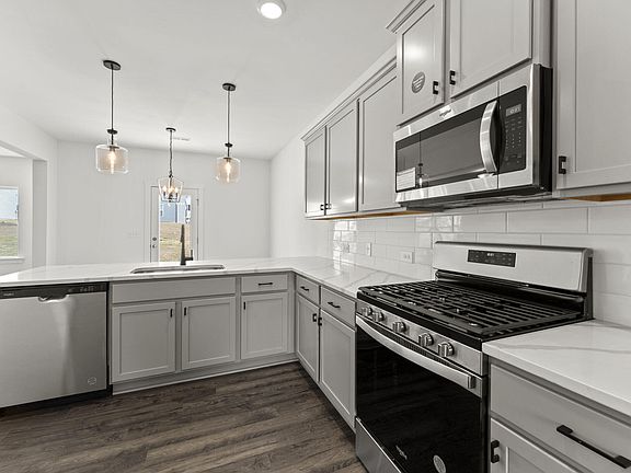 Move-In Ready Opportunity - 3BR / 2.5BA Hudson plan features private study, great room, dining room, kitchen with eat-in nook, and rear patio, perfect for entertaining. Upgrades to kitchen include quartz counters, tile backsplash, SS appliances and upgraded gas range. Second level features primary suite with ensuite, spacious secondary bedrooms, additional full bath, laundry room, utility room, and game room space.