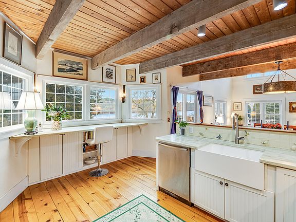 Welcome to 'Wind in the Willow,'' a warm and inviting colonial inspired by the original barn, designed to blend timeless character with modern comfort. A balanced layout of open-concept living, along with thoughtfully designed private spaces. The living room features exposed posts and beams, wide pine floors, wooden lap ceilings, and a soaring cathedral ceiling. Floor-to-ceiling windows provide continuous natural light, while the striking chimney and gas fireplace promise comfort on cool New England days. Just a few steps up, the dining area opens to the well-appointed kitchen with quartz countertops, decorative tile backsplash, updated appliances, and a farmhouse sink. The breakfast bar overlooks the deck and lush landscape on through The Willow down to the pond. First floor private primary suite with updated bath and adjacent laundry. Up the open stairway to ''The Landing'' with flexible options: home office, library, or studio. A second primary suite including sitting room or office. Up to 'The Loft,' a playroom for the kids, a yoga studio, a retreat.