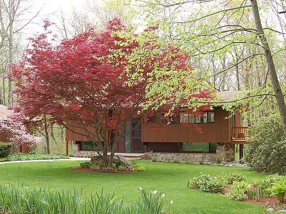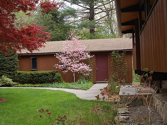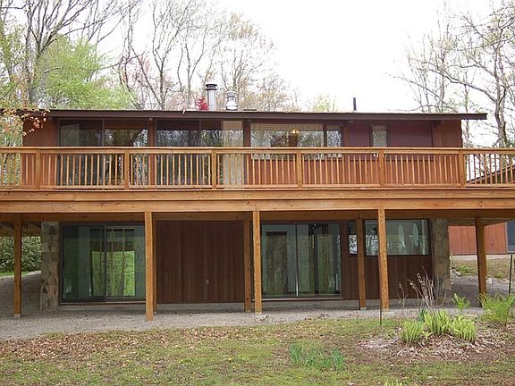 Deck Home Contemporary! One owner! Private setting. Meticulously maintained and recently renovated. Not your mundane home. Set on almost 26 wooded acres, it abuts Purgatory Chasm State land where you can walk and enjoy nature and/or use the wood to help heat your home. This passsive solar home sets approx. 900 ft. off the road. Open floor plan with hardwood floors, cathedral ceiling, new woodstove, new stationary windows on the main level. Multiple sliders to wrap-around deck (new), Cedar exterior siding. Lower level has been renovated within the past yr. Bathroom is brand new,...with the laundry adjacent to it (washer/dryer included). Also on the lower level is a 15 ft. x 8 ft. area where your exercise equipment could go. Home has plenty of light. Because of the open floor plan, the living and dining area could be reconfigured with furniture to have an enlarged great room, etc. Great home to entertain in. Nicely landscaped. Oversized garage (24 X 32) has 100 amps.