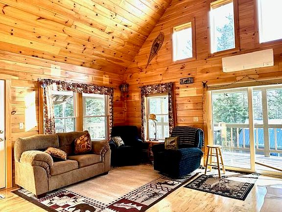 Charming home with wood floors in the open kitchen/living /dining area. Chalet style with a metal roof, on demand generator, wrap around porch. Close to snowmobile and ATV trail as well as Flagstaff Lake and Sugarloaf Ski and Golf Resort. Vaulted ceiling in the living room. Heated basement. Three heat sources. Detached garage can also be heated.