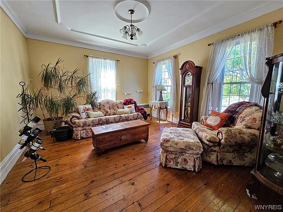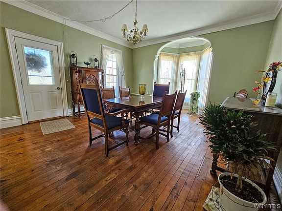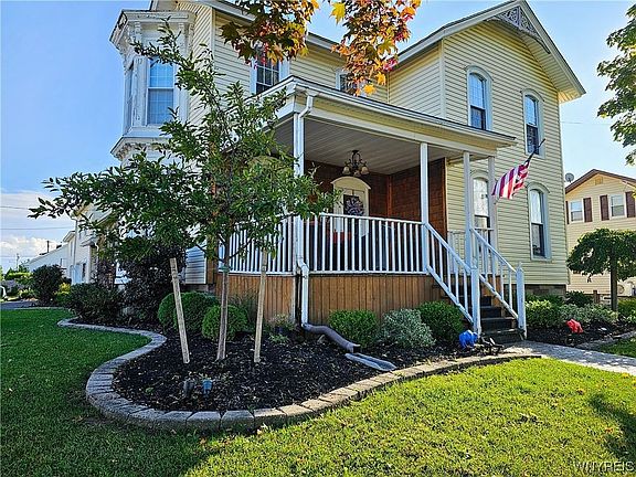 Village of Middleport Masterpiece located just a short walk to both Roy-Hart School, playground, and downtown. This historic home seamlessly blends old-world charm with modern comfort. It features a fenced yard, a spacious detached carriage barn, and classic architectural details, including a welcoming heated sun porch and an expansive kitchen with an island. 4 true bedrooms on the second floor, with two full baths and two additional flex rooms with dual staircases. The first floor offers an additional full bath, laundry room, formal dining, and living, with two possible additional bedrooms and more flex space utilities most recently as a theatre room and salon space. The family room overlooked by the kitchen offers no shortage of light leading to an outdoor patio with a koi pond & pool with new bar seating. A large carriage barn with a second driveway has room for all your hobbies & vehicles, with another floor of storage space above as well.