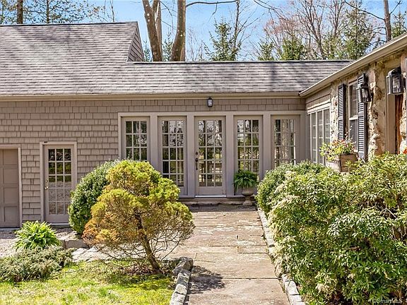 Rare opportunity. Very special, vintage three-bedroom, two full bath home with whimsical charm. Expanded "hunting lodge" with lovely original details, and modern updates. This wonderful home is unique in all the right ways. The floor plan is very workable with great separation of the master suite from the secondary bedrooms. Spacious, inviting kitchen with generous cabinetry, large skylights, and dining area feels like the "heart" center of the home. The cozy "lodge" living room with wood-burning fireplace, hardwood floors, and beautiful textured plaster walls is enchanting, and the sunroom, currently used as a home office, adds to the functionality of the home. The large primary ensuite bedroom with balcony is very private and well separated from the rest of the home on the second level. Charming, enclosed breezeway functions as a mudroom. Two-car side by side attached garage. Updated systems and whole house generator. Beautiful property surrounded by stone walls and walkways, plus a large deck off the breezeway. Well located in lower Weston, and close to the parkway and nearby surrounding towns with a multitude of shops and restaurants. You will not want to miss this special home!