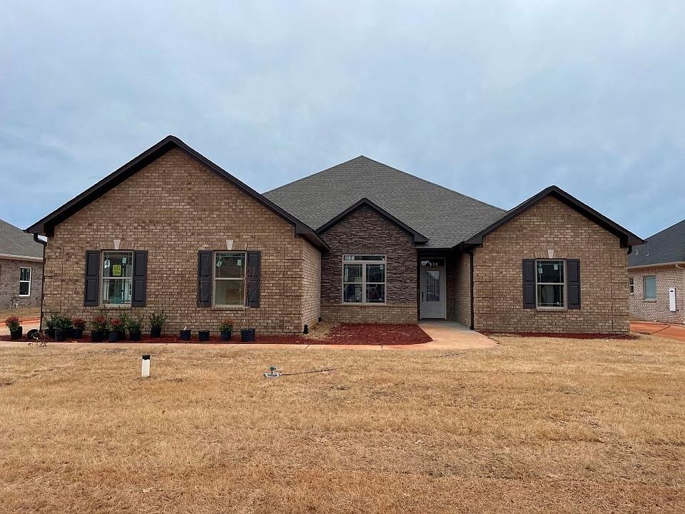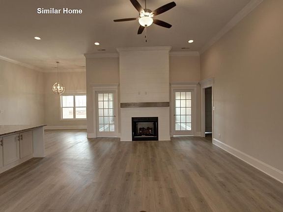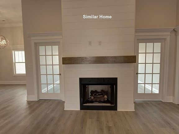 All brick Monticello Plan A is an open plan with a 3 car side entry garage backed by a 2-10 home warranty.. Home has 4 bedrooms, 3 baths and a Sunroom. Home has wood plus flooring (Mohawk Revwood) in all living areas and bedrooms. Great Room features 12' ceiling, extensive trim, gas-log fireplace with upgraded fireplace treatment, wood plus flooring, recessed lights and ceiling fan. Sunroom has 12-foot ceiling, French doors from family room, Wood Plus Flooring, and ceiling fan. Dining room has 10' coffered ceiling, wood plus flooring, extensive trim including shadow box under chair rail. Kitchen includes 12' ceiling, custom cabinetry and granite countertops, large island with extra storage and countertop seating, stainless appliances including dishwasher, gas range and microwave, tile backsplash, wood plus flooring, recessed lighting, and walk-in pantry. Breakfast has 12' ceiling, wood plus flooring and extensive trim. Master bedroom has 11' double tray ceiling, wood plus flooring, recessed lighting, extensive trim and ceiling fan. Master bath has 11' ceilings, glamour tub, large tile shower with rimless shower door, separate toilet area, double vanity with granite countertops and large walk-in closet. The additional bedrooms have 9' ceiling, ceiling fans and crown molding. The additional baths have 9' ceilings, tile flooring and granite countertops. Laundry has 9' ceiling, custom cabinet and tile flooring. Home has rear covered porch with ceiling fan. The home has a tankless