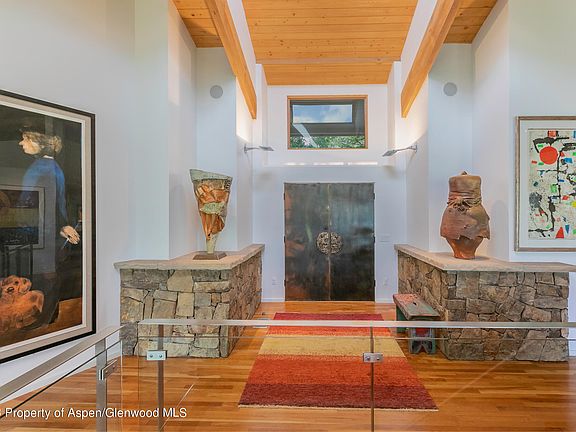 Enjoy the sunny side of SMV from the expansive windows that showcase spectacular views from every living space! Located in a private cul-de-sac, 5 minutes to Base Village and in the Aspen School District., with main floor living makes this contemporary home a must-see! Elegant doors open up to cherry wood floors, sunken living room with a wood-burning fireplace, entertainer's dining room, and primary bedroom with stunning head-on views of Snowmass ski area. Entry from the two-car garage leads to the mudroom, two offices., a walk-in pantry and chef's kitchen. Downstairs is host to the family room with wood-burning fireplace, full wet bar, laundry room and 2 guest bedrooms, 2 bathrooms and an art studio all with outdoor access to the lower patio, hot tub and gas firepit.