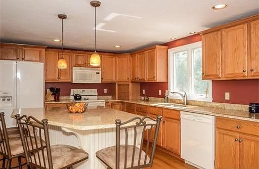 Well maintained HOUSE BEAUTIFUL in desirable Kingston neighborhood...open floor plan for easy entertaining...Kit w/granite counters, center island & breakfast area, formal dining room, living room w/FP, 1st floor office/den, huge cathedral ceiling great room w/sliders to multi-level decks surrounding a/g pool, finished LL play room w/slider to stone patio...features include transfer switch for easy generator hookup, well serves irrigation & pool...great highway & commuter rail access...perfect!