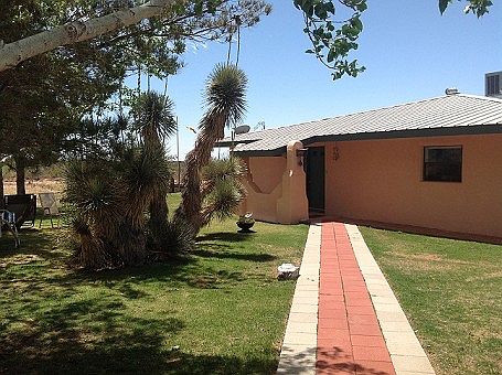 This unique dwelling situated in the Tularosa Basin exudes southwestern style and has been consciously crafted with energy efficent, cost effective comfort. This active/passive solar home built on ten acres offers spectacular mountain views and peaceful solitude. The major source of heat for the over 2200 sq. ft home is the solarium. The outside walls, contructed of 10" adobe with 1" of foam insulation covered with plaster and stucco for a territorial look. All rooms have a minimum of two adobe walls for heat retention and release. The home was studied by NMSU engineers for its effective use of solar gain, power and contruction; and came away with high regard and comments. You will love the seclusion, spectacular mountainviews and sunsets.