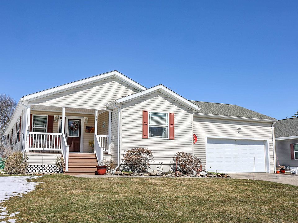 Welcome to Governor’s Forest, a 55 plus community! Step into this inviting two-bedroom, two-bathroom single-level home located in the charming town of Fremont, New Hampshire situated on leased land. As you enter through the front door, you’re welcomed into a spacious living room with a gas fireplace, perfect for relaxing or entertaining guests. Continuing through and you’ll find a dinning room seamlessly connected to the living area, creating an ideal space for family meals and gatherings. The adjacent kitchen boasts an island for additional prep space and casual dining, along with plenty of cabinet space and updated appliances. Adjacent to the kitchen, a versatile den doubles as a cozy office space. The highlight of this home is the master suite, featuring a large walk in closet and a generously sized bathroom complete with double sinks, whirlpool tub and walk-in-shower. A second well-appointed bedroom provides ample space for family and guests, with easy access to another bathroom. The laundry room/mudroom leads to the 2 car garage with extra storage space above. Outside, the expansive lot offers plenty of space for outdoor activities with a good size deck and outdoor shed with electricity providing additional storage for tools and equipment. Other great features are hardwood floors in the living, dinning and kitchen, central a/c and generator ready and pets allowed!